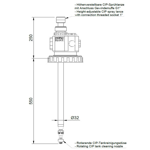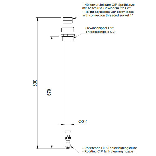PE-el Sprühlanze DN 25 (d32), elektrisch leitfähig, verstellbar, mit Tankreinigungsdüse aus PVDF-el, Ausführung PE-el / FEP-FPM / PVDF-el