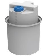 Die eingeformte Literskala der  Dosierbehälter, ermöglicht das Ablesen des Füllstandes und die Flachstellen die Montage von Armaturen und Behälterdurchführungen. Bei  der Aufstellung der Dosierbehälter mit Rührwerk, werden im unteren Bereich Befestigungswinkel integriert, damit das „Wandern“ des Dosierbehälter verhindert wird.