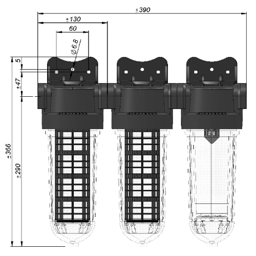 - Serienmäßige Ausstattung: Filterfliese 100?m + 25 Mikron, mit Aktivkohle befüllte CTN-Kartusche, Schlüssel, 2 Wandbefestigungen aus