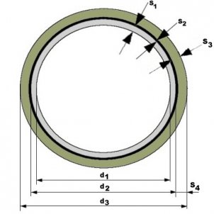 d2  Innendurchmesser des Laminates bzw. Außendurchmesser der Auskleidung