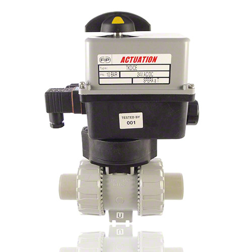 | 2/2-Wege-Kugelhahn mit gesicherten Überwurfmuttern aus PVC-C mit elektrischem Stellantrieb mit Endlagenrückmeldern, Handnotbetätigung und optischer Stellungsanzeige Stellantriebsdaten: Standard 90-240V / 50-60Hz (AC), ohne Aufpreis 24V AC/DC Andere Spannungen auf Anfrage ***DN50 = PN16 auf Anfrage Anschluss: Klebestutzen Dichtung: PTFE/FPM |