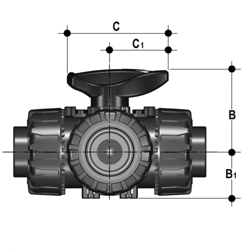 PP Kugelhahn 3-Wege, T-Bohrung, Schweißmuffen, FPM