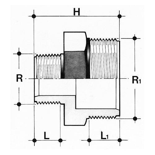 | - nur für Kunststoffgewinde Anschluss: Gewindestutzen/Gewindestutzen - konisches R-Gewinde nach ISO 7-1 |