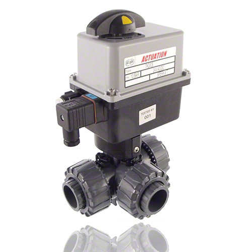 3/2-Wege-Kugelhahn aus PVC-U mit elektrischem Stellantrieb