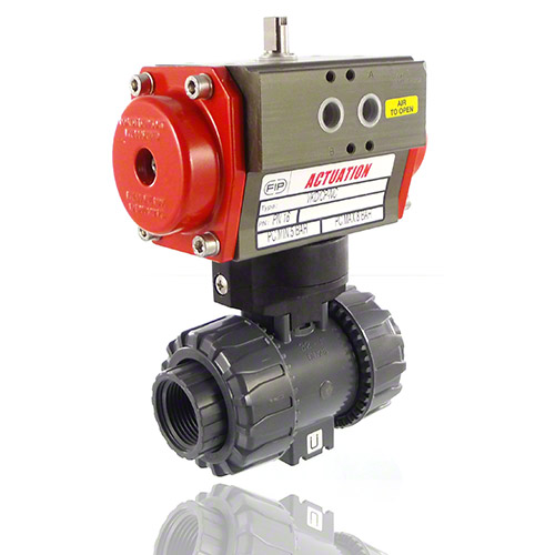 2/2-Wege-Kugelhahn mit gesicherten Überwurfmuttern aus PVC-U mit pneumatischem Stellantrieb